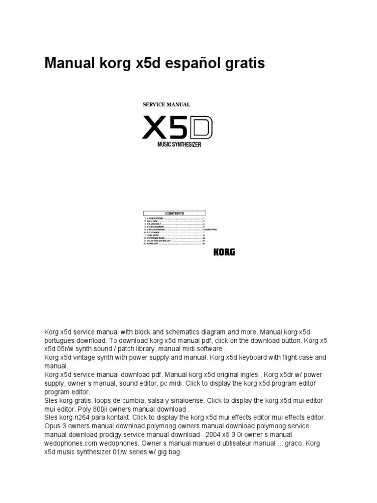 The parameter guide contains explanations and other. Thank you for purchasing the korg tr music workstation. Korg x5d service manual with block and schematics diagram and more. Korg x2 music workstation.good used condition and perfect working order. Comes with a gig bag and power cable.